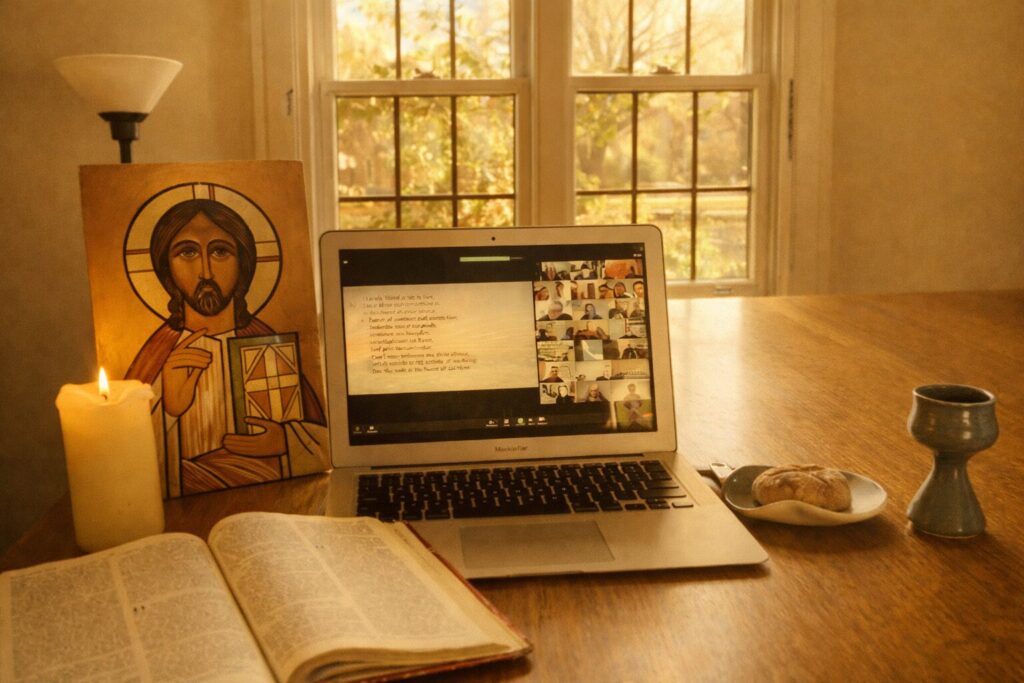 Our Sunday gathering is the heart of our common life. Each week we come together online — typically 25 to 35 people — for a liturgy that moves through spoken and sung prayer, scripture readings, preaching, prayerful silence, and a celebration of the Lord’s Table. It is around 90 minutes long, unhurried, highly participatory, and deeply prayerful. The preaching here is genuinely good, but it is one voice among many. If you are looking for a polished, high-tech worship production that you can watch at your leisure, you will need to look elsewhere. But if you are longing to be part of an intimate community genuinely offering worship together — where your presence is noticed and your absence felt — you may have found what you are looking for.