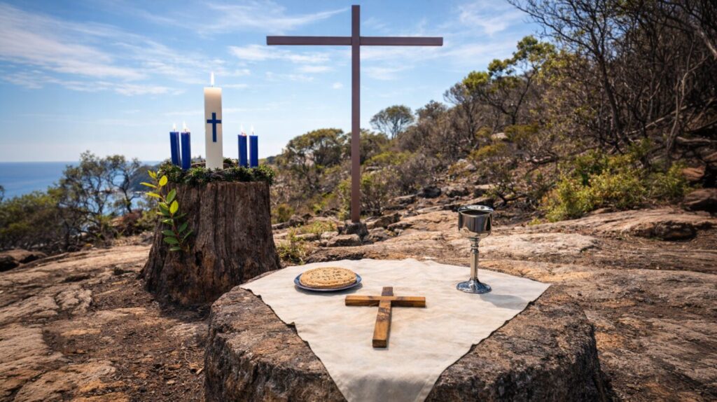 Each season has its own colour, its own character, and its own way of opening us to a different dimension of the Christian life. The images on this page were created for our congregation — the Lord’s Table set in different Australian landscapes, each landscape chosen to carry something of the season’s emotional and spiritual weight.